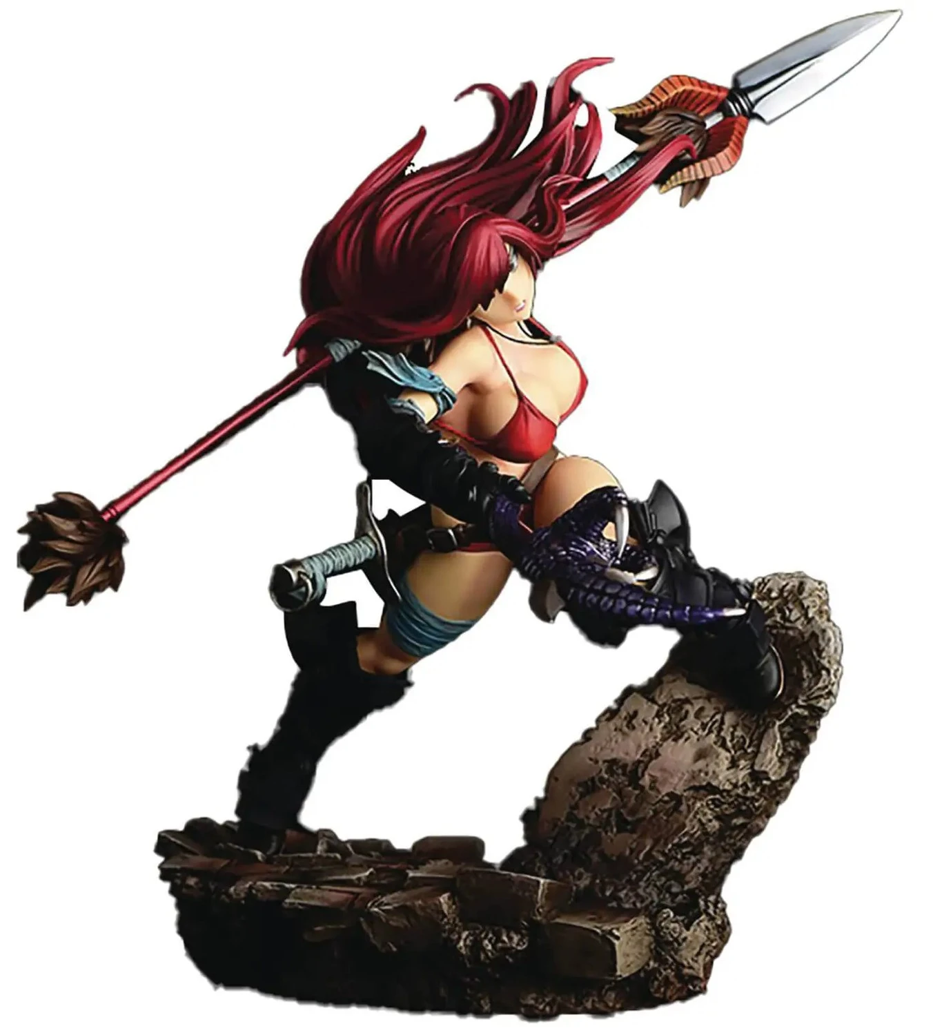 From Fairy Tail, Erza Scarlet returns as a beautiful 1/6 scale figure wearing a red bikini and black armor, her red hair sculpted flowing wildly behind her to match her dynamic battle pose.