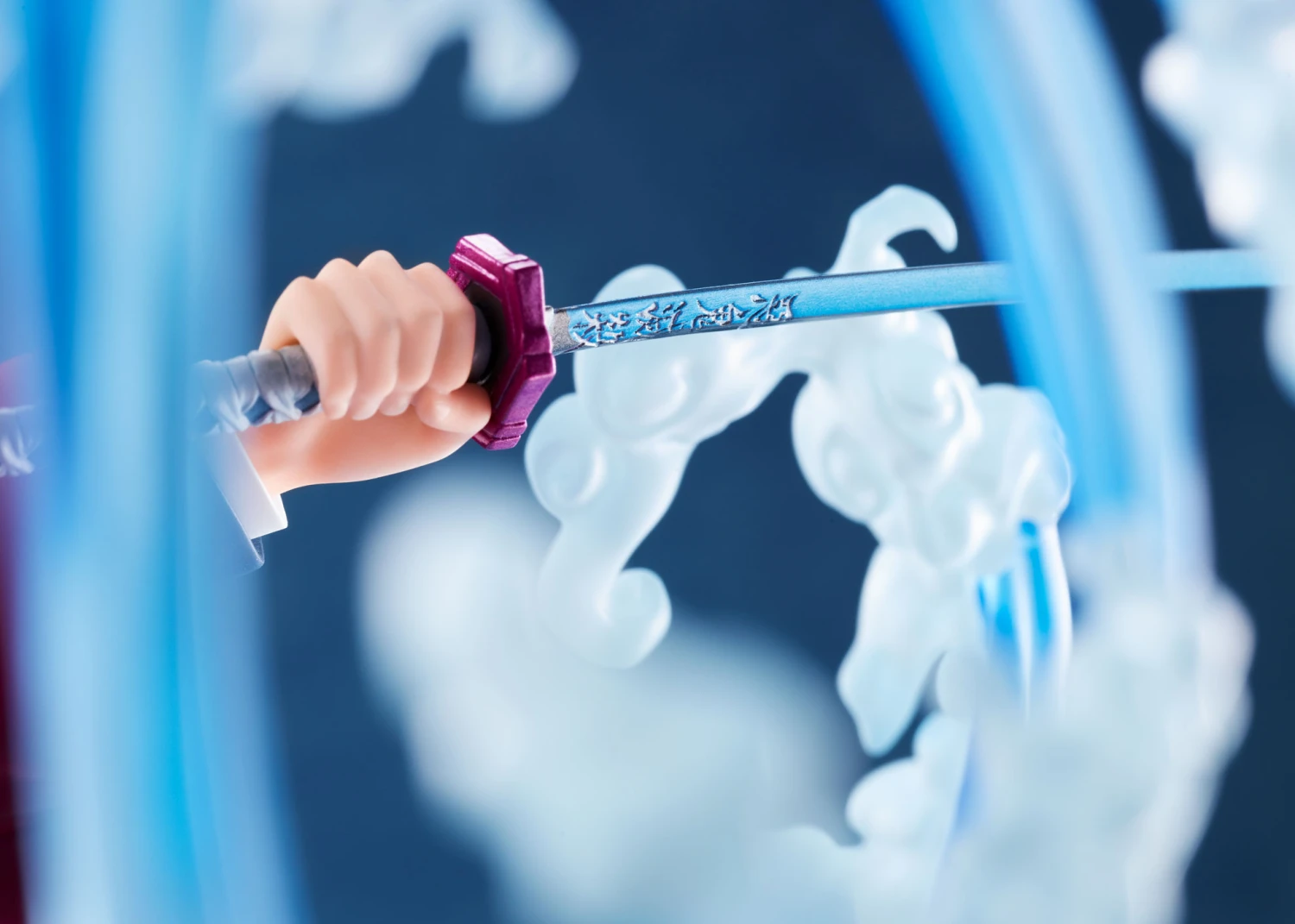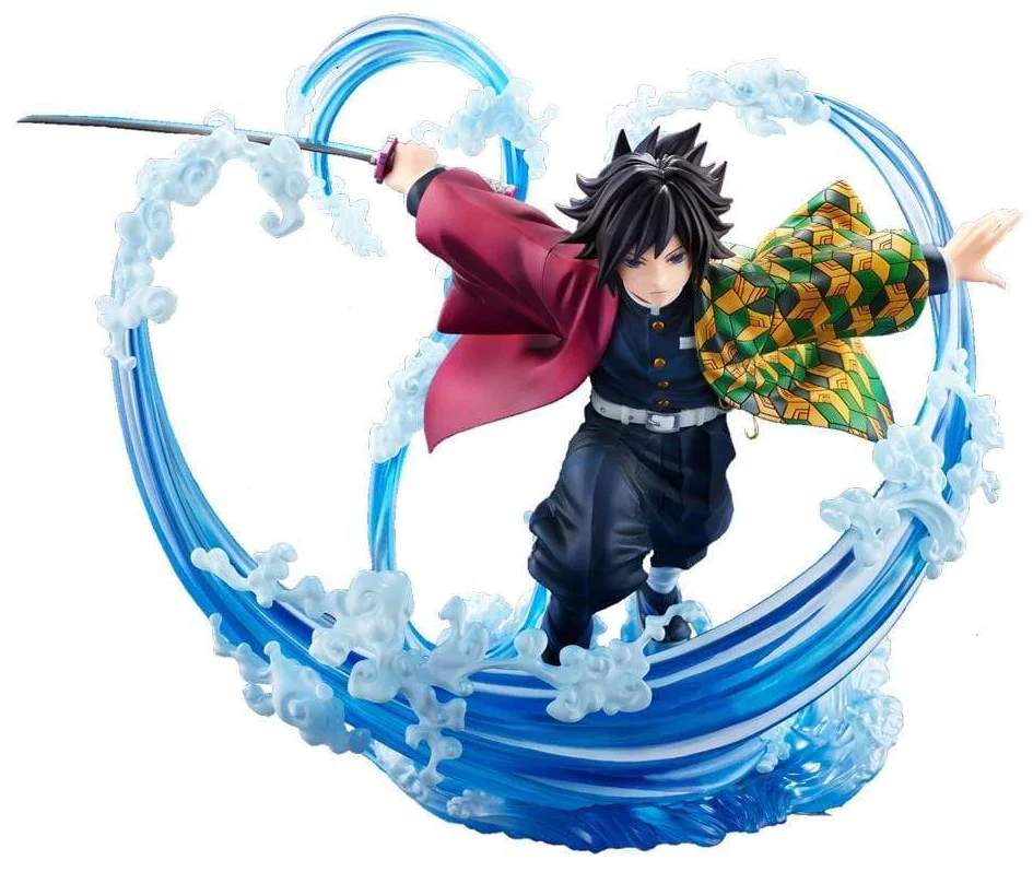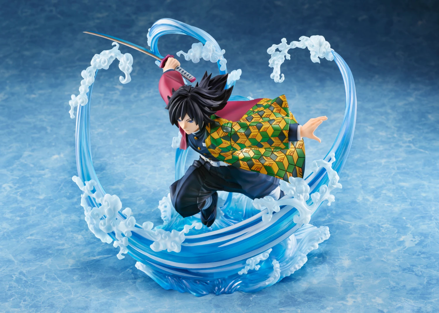 Based on the illustration from the pop-up acrylic mascot set sold at the Comiket 97 Aniplex booth, Giyu Tomioka as the Water Hashira has been dramatically sculpted amidst an intense battle as he unleashes one of his signature breathing techniques.