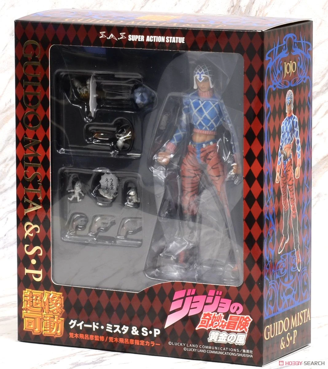 Guido Mista & Sex Pistols have appeared in Super Action Statue series! JoJo’s Bizarre Adventure: Super Action Statue is a series of character and Stand figures released by Medicos Entertainment. Figures are moveable and you can enjoy various different poses. Each figure has the “S.A.S: Super Action Statue” logo on the box.