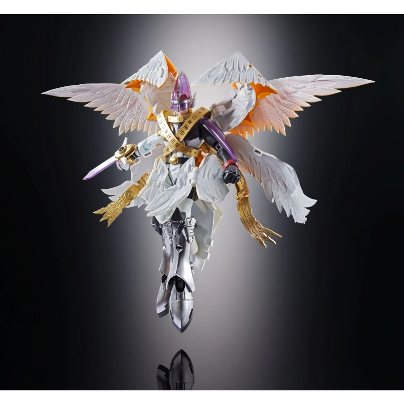 The fifth release in the DIGIVOLVING SPIRITS line is the mysterious Royal Knight Alphamon! The latest in toy design perfectly captures both its pre-evolved “cute” form and evolved “cool” form without sacrificing either! And incredibly, it perfectly transforms without needing to swap out parts. This is one item Digimon collectors will not want to miss! The set includes a stand for Dorumon, plus optional hands.