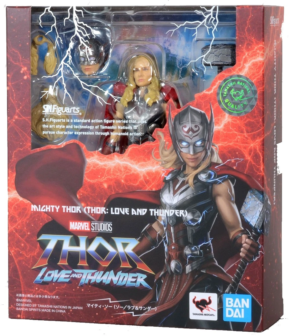 Jane Foster as The Mighty Thor joins the S.H.Figuarts line, from the new Marvel film Thor: Love and Thunder! She has been created with great detail and features premium articulation with multiple accessories.