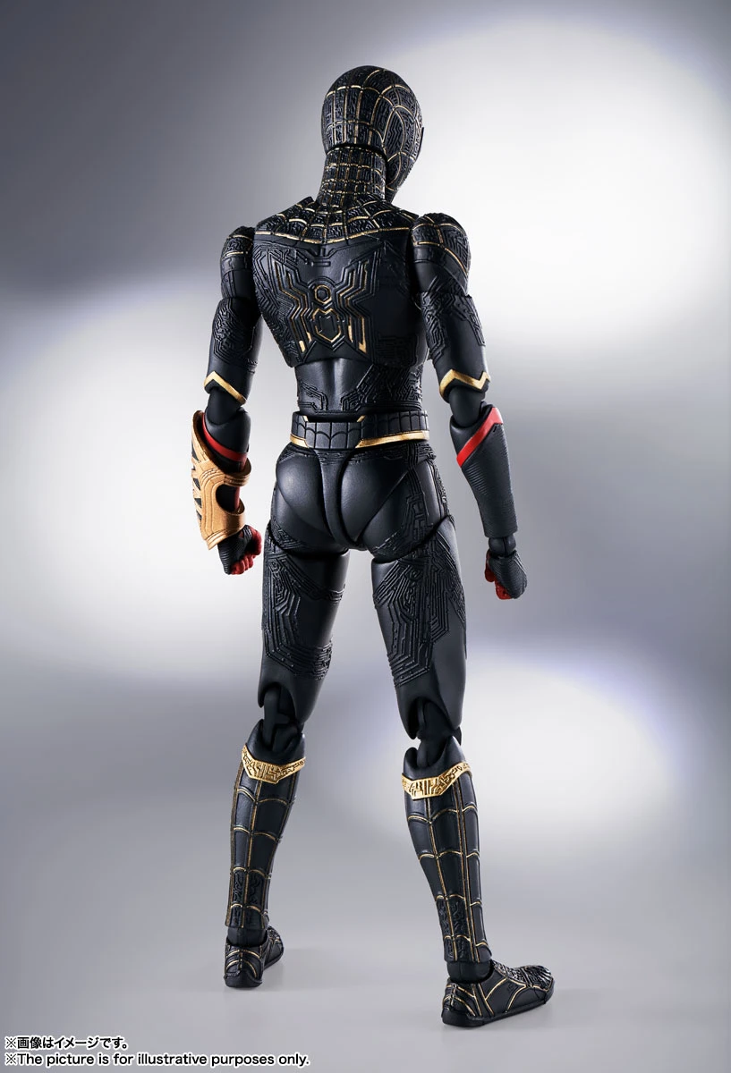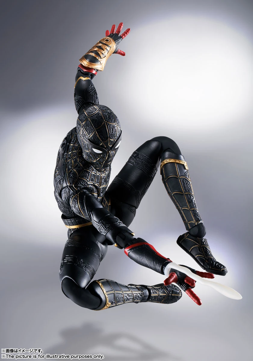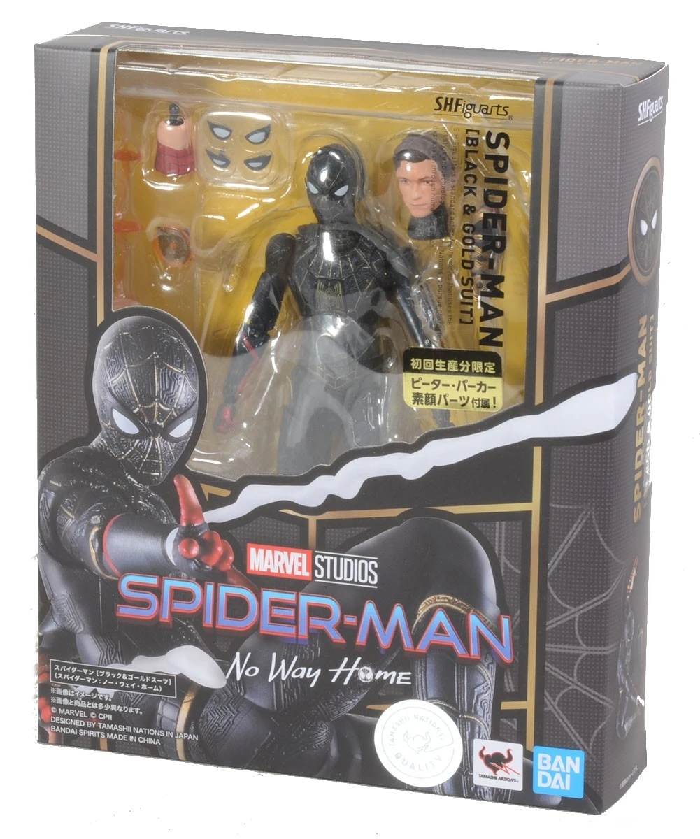 The black and gold suit from Spider-Man: No Way Home comes with a head part that can be used to recreate his bare face; it can also be used with the No Way Home S.H.Figuarts Spider-Man [Integrated Suit] (sold separately).