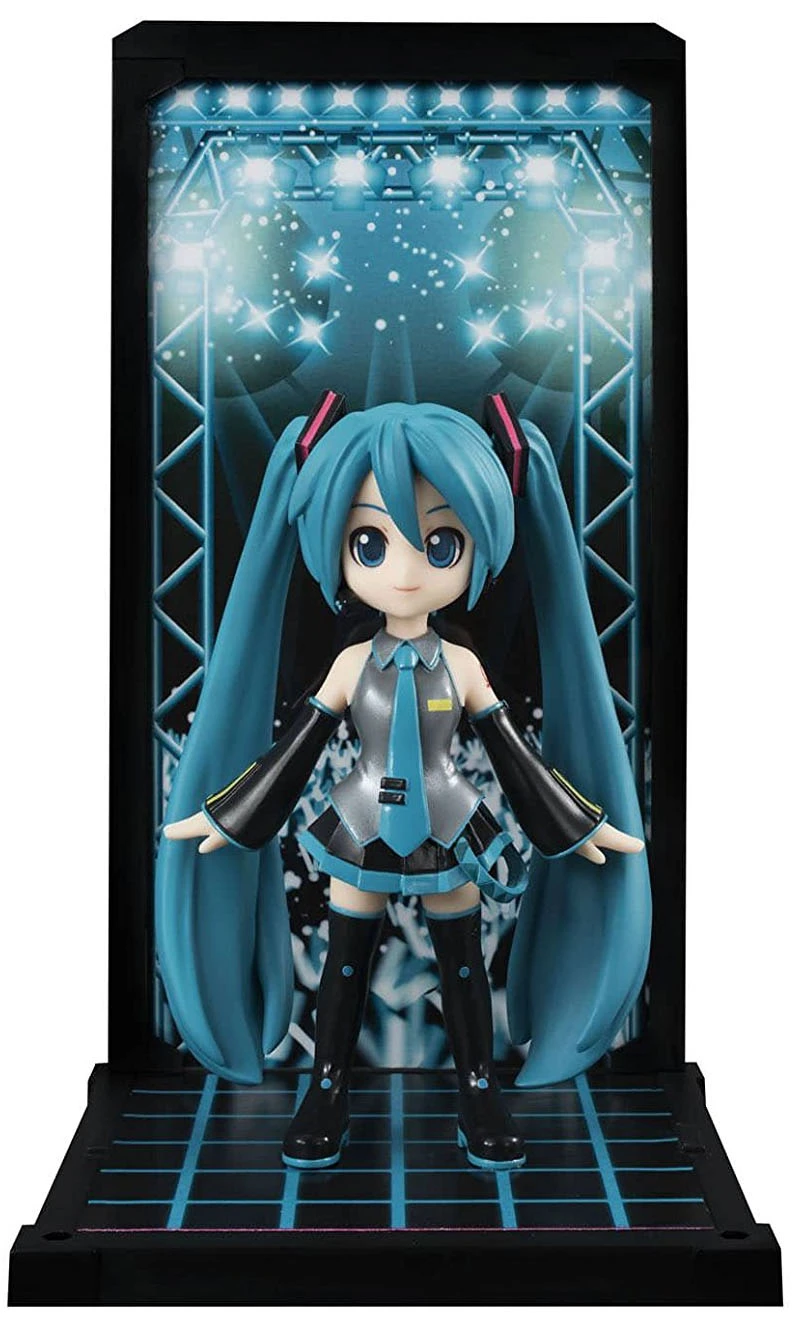 The world famous Vocalic joins Tamashii buddies! beautifully sculpted and painted, the figure comes to life against a dramatic backdrop evoking her stage concerts. The set includes a 90mm figure, base, and back panel.